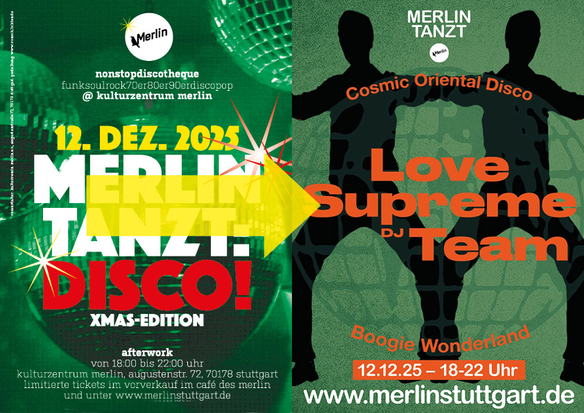 Die geplante Afterwork-Party im Merlin kann nicht wie geplant mit DJ Nonstopdiscotheque stattfinden: Stattdessen wird das DJ-Team LOVE SUPREME auflegen. DISCO wird COSMIC ORIENTAL!